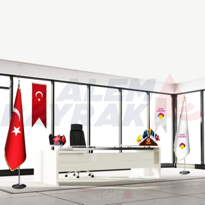 1 Adet Simli Özel Logolu Makam Bayrak Takımı(Krom Direkli )