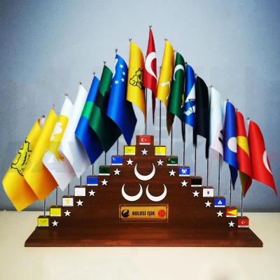* 2 cm kalınlığında Mdf Ahşap Kaide, Bayraklar Hariç Ahşap Kaide Yüksekliği 30 cm , boyu 62 cm, en 12 cm,