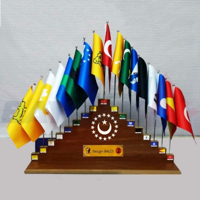 * 16 Eski Türk Devleti Masa Bayrağı 15×22,5 cm ölçülerinde Çiftkat Saten Kumaş