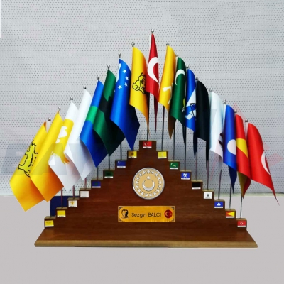 * 2 cm kalınlığında Mdf Ahşap Kaide, Bayraklar Hariç Ahşap Kaide Yüksekliği 30 cm , boyu 62 cm, en 12 cm,